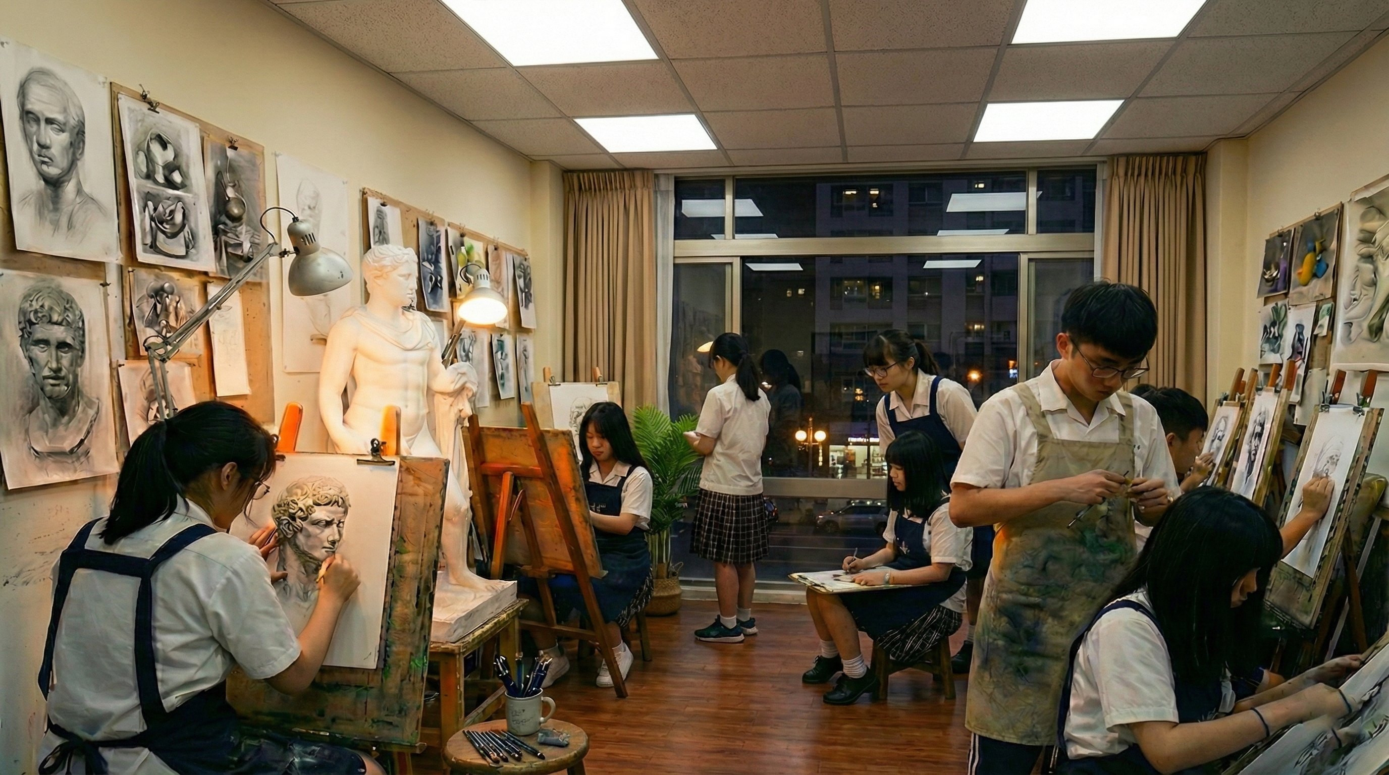 透過分區規劃,加上高演色性的優良光源,讓學生看畫紙清晰無色差、看石膏像立體分明,這才是最專業的畫室照明配置。