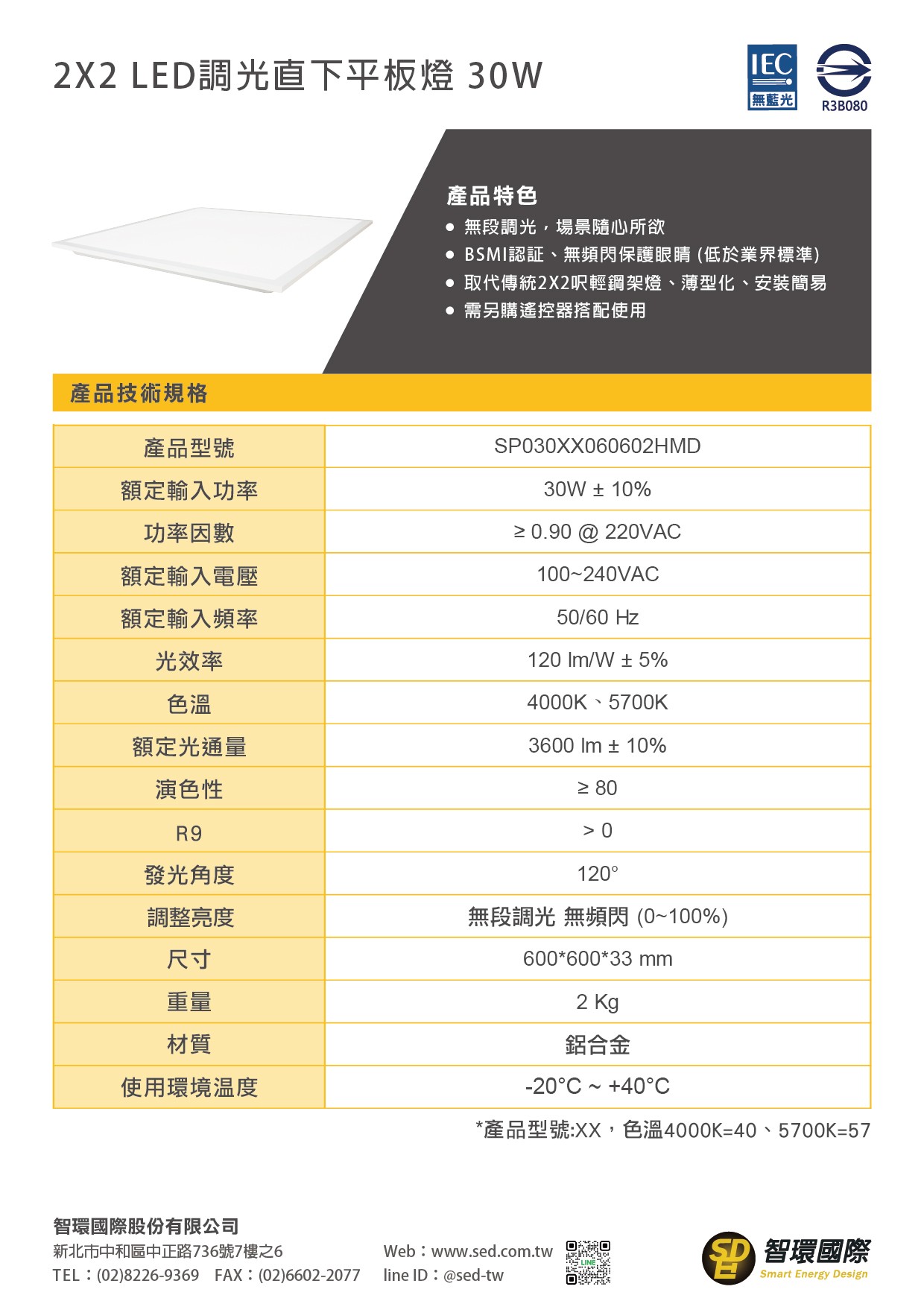 2x2 LED調光調色直下平板燈 30W (3000K-6500K)
