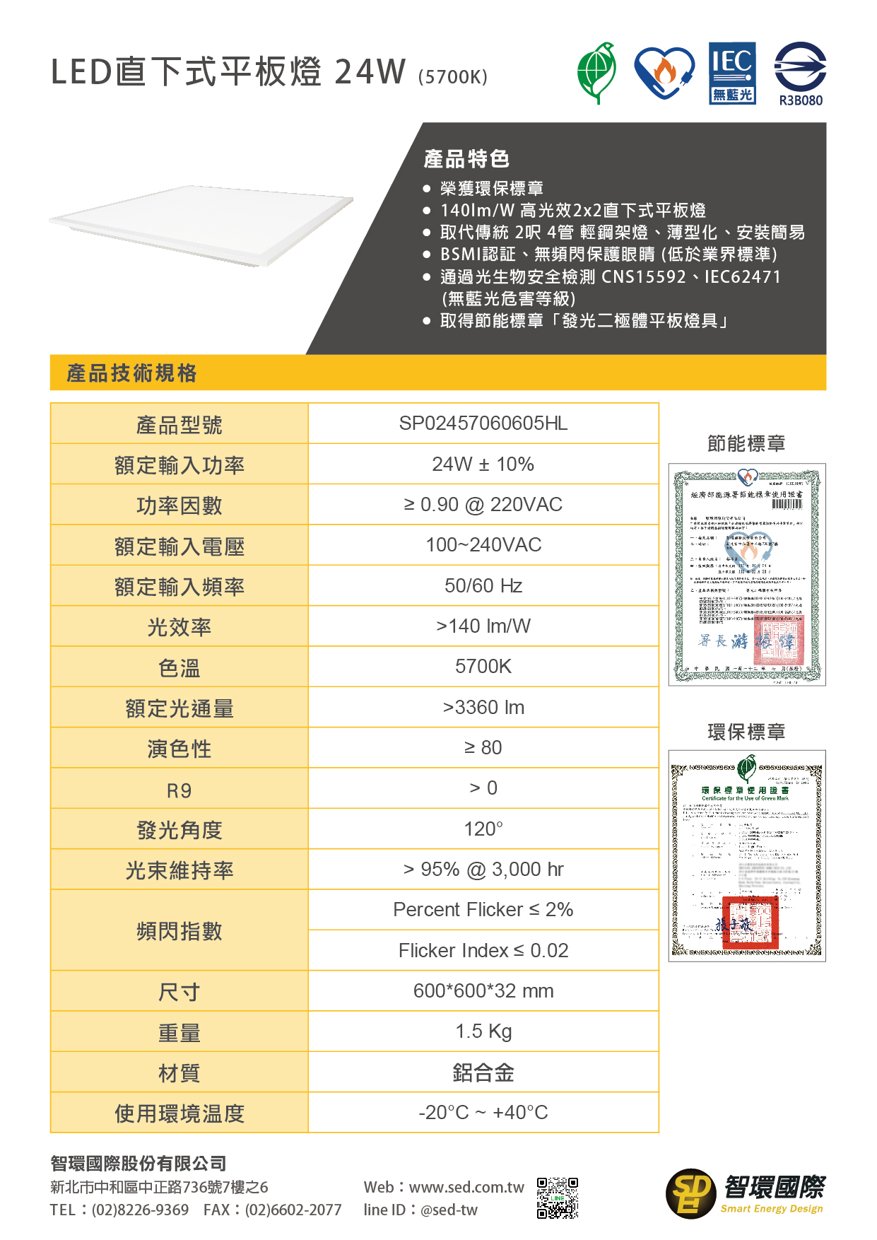 2x2 超高光效LED側射式平板燈25W (5700K)